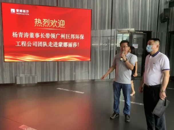 ?2021年8月14日上午,為了更好了解企業(yè)環(huán)保需求及企業(yè)管理發(fā)展方向,廣州巨邦環(huán)保工程設備有限公司楊青濤董事長及周彥群總經理帶領公司管理層12名干部前往佛山南海區(qū)西樵鎮(zhèn)太平工業(yè)區(qū)上市公司--蒙娜麗莎集團股份有限公司進行實地參觀交流。