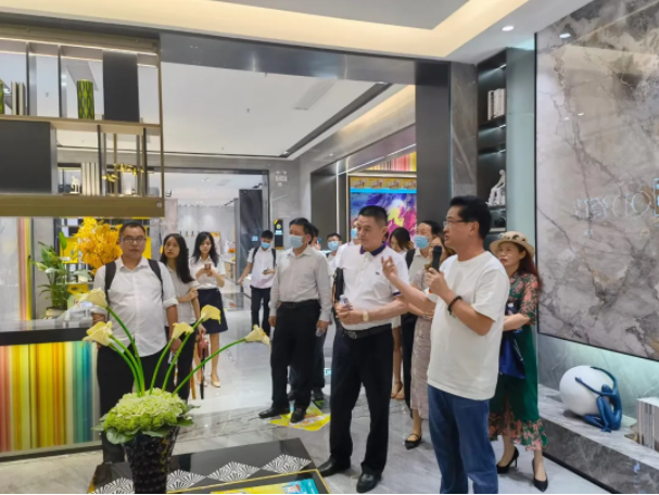 首先,楊青濤董事長團隊一行人在蒙娜麗莎集團張旗康董事的陪同下,相繼參觀了蒙娜麗莎工廠的智能制造數字中心、生產車間、廢氣廢水處理中心、企業(yè)文化長廊及展廳等區(qū)域,通過了解蒙娜麗莎數字化管理、標準化生產、技術研發(fā)、環(huán)保治理設施等方面的展現,深刻地感受到蒙娜麗莎真正將藝術、綠色與智能等元素高度融合到生產中,在科研、生產自動化與綠色化方面,是業(yè)內當之無愧的領軍人。